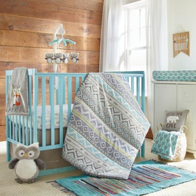 Includes crib bedding set, changing pad cover, musical mobile and more for a coordinated look.